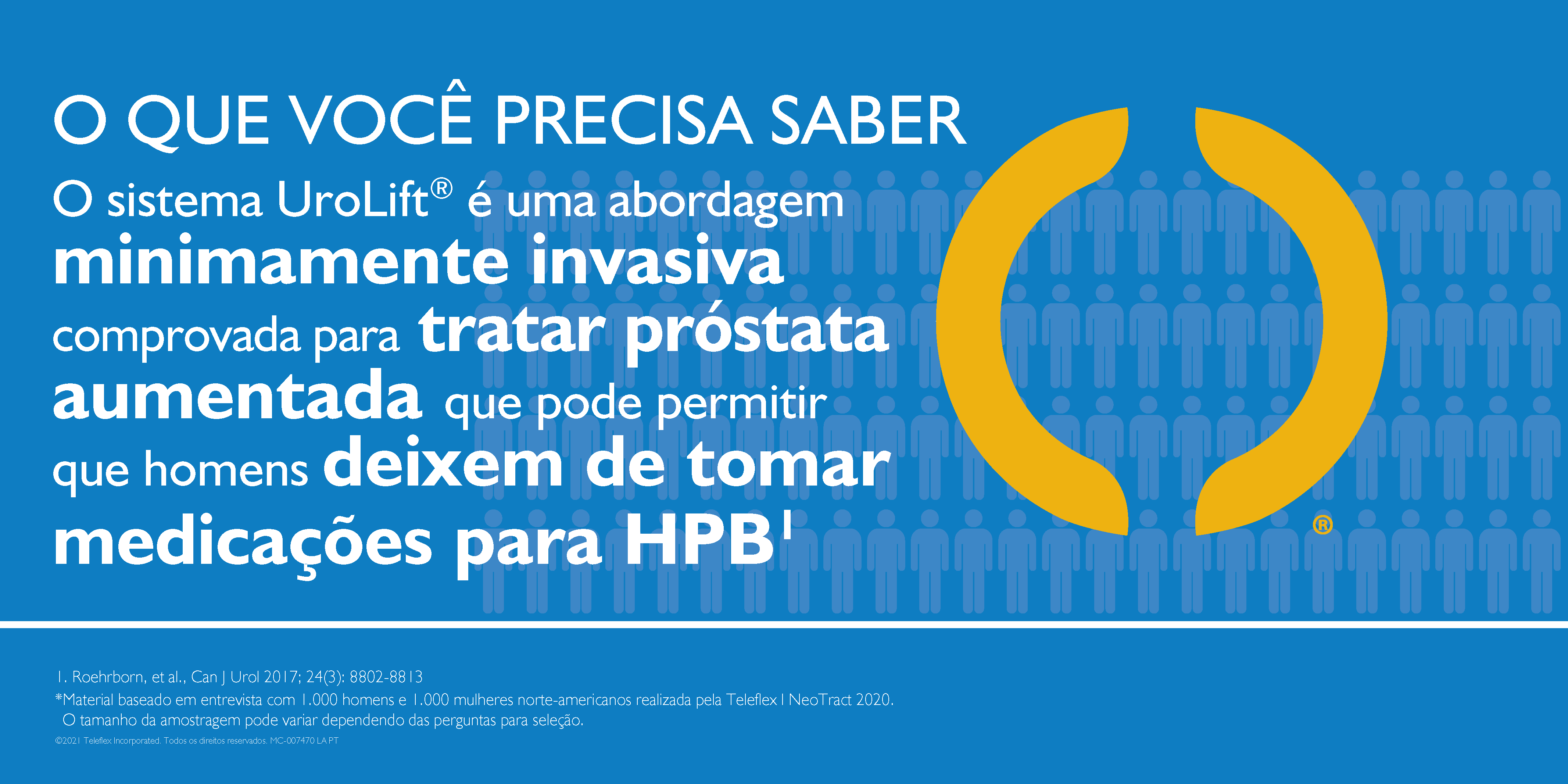 Teleflex, BPH Relief In Sight e UroLift são marcas registradas ou comerciais da Teleflex Incorporated ou de suas afiliadas nos EUA e/ou em outros países. ©2023 Teleflex Incorporated. Todos os direitos reservados. Revisado: 02/2023. MC-008657 PT